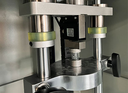 將彈簧、拉簧裝夾于試驗(yàn)機(jī)上,以自設(shè)定的速度進(jìn)行疲勞試驗(yàn),并實(shí)時(shí)監(jiān)控力值;循環(huán)到設(shè)定次數(shù)后試驗(yàn)完成,兩工位均有力值傳感器,均可實(shí)時(shí)顯示受到的力值大小。