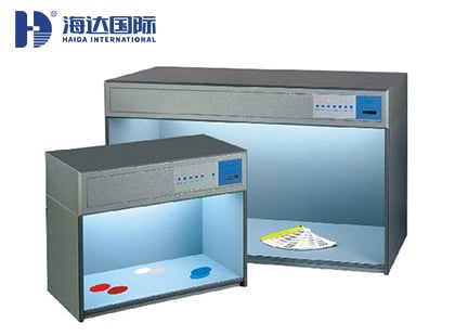 海達儀器HD-A825-1對色燈箱本,產品提供多種標準光源,各光源依據C.I.E.標準可使用于紡織品、印刷品、熒光物等材料的顏色比較,演色評價Ra98以上。因光源、照度及環境不同,使產品在配色、對色上,難以一致或發生色彩判斷錯誤,因此本燈特別設計而能提供標準、客觀的光度,使原材料、產品色彩之質量及比對,得以精確控制