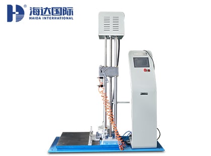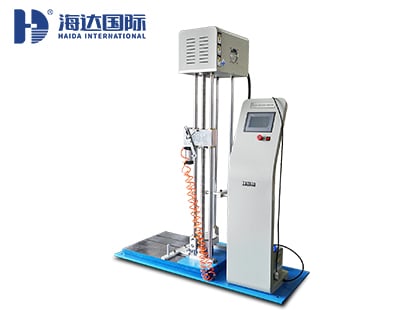 1、本設備主要測試車架/前叉組合件落下疲勞強度,在鞍管上緊固一質量為70 kg(國標,歐標為100KG)的重物,并使其重心置于離立管上端75 mm(歐標為70MM)處之立管軸線上,將組合件繞后軸轉動,使70 kg重物的重心垂直置于后軸的上方,然后讓組合件自由落下沖擊在鋼砧上,GB標準測試兩次,EN標準測試50000次,頻率不超過25HZ,測試完畢后,車架應無可見之裂紋或損壞,避震裝置的任何零件應無分離。